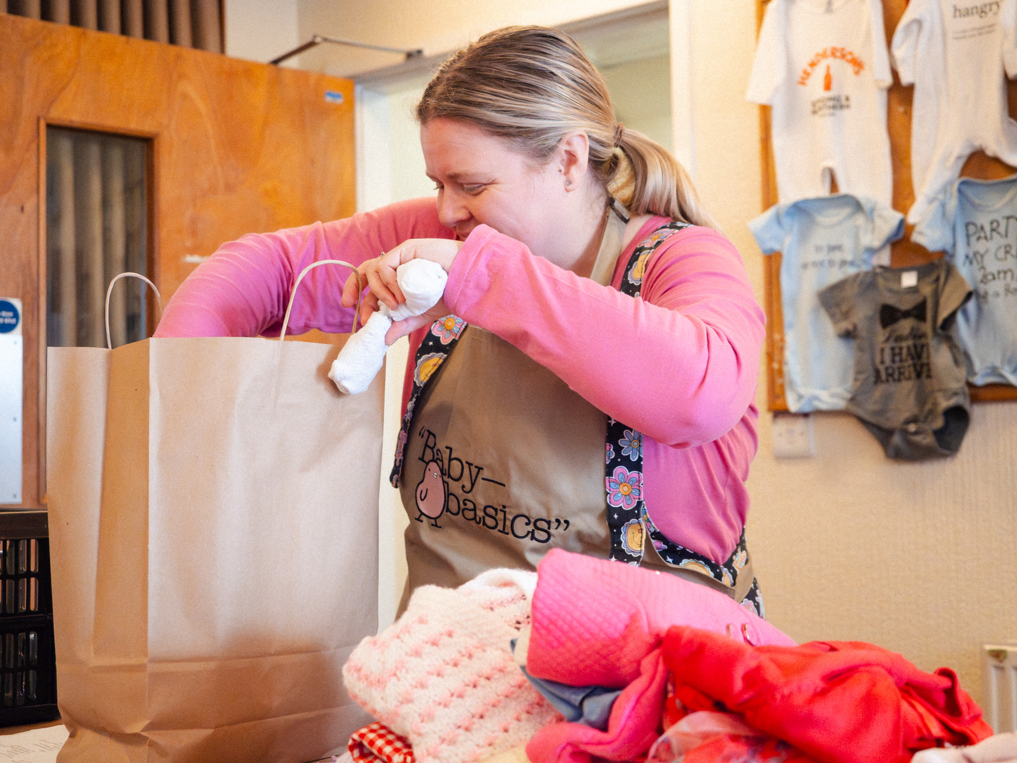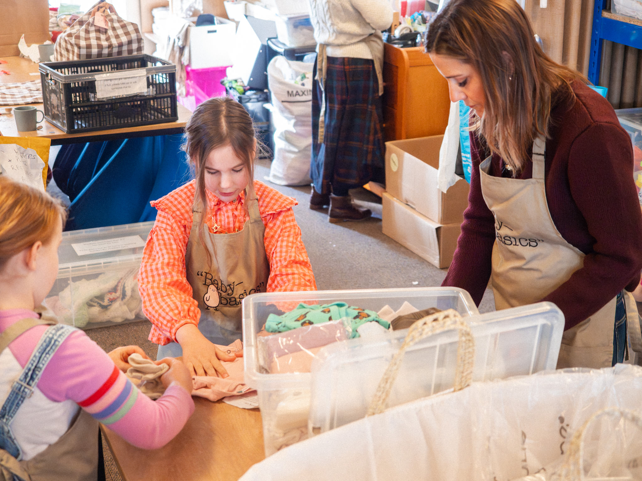 From 1 hr to 2 days a week, our volunteers give up their time to come and sort donations, pack referrals and much much more. We have over 80 in centre volunteers who regularly come and work in person with us as well as many many more who sew, knit, iron, gather items and support us in so many other ways.